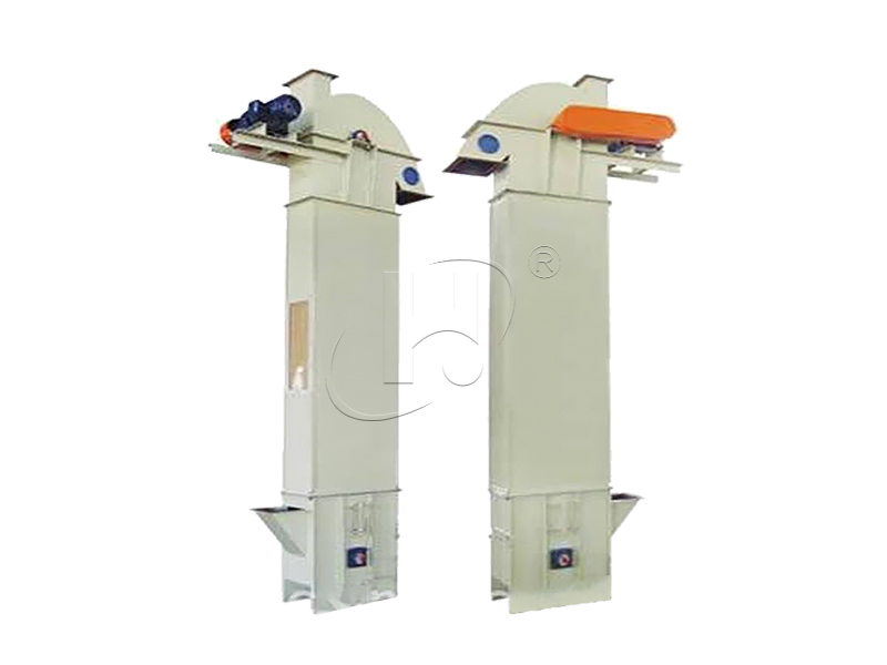 采用橡膠帶作為牽引構件,適用于中等產(chǎn)量、中小塊度物料的垂直輸送,常用于糧食、飼料等行業(yè)。
